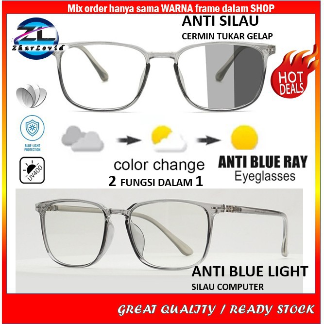 Anti Blue Light Ray Glasses Cermin Mata Elak Rabun Jauh Dekat Dewasa Spec Tukar Warna Gelap Kaca Silau Laptop Malam Men Shopee Malaysia